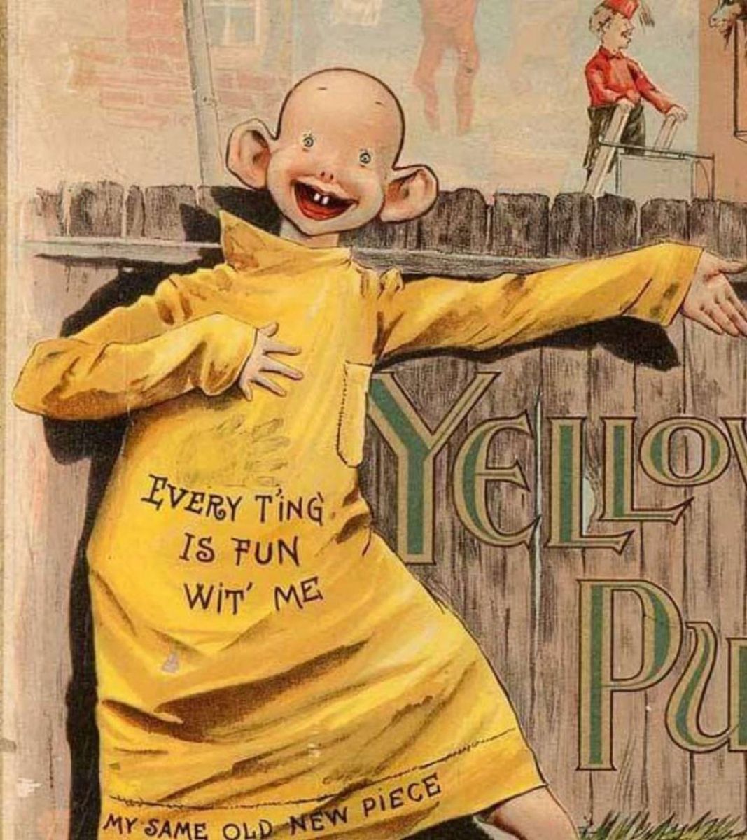 El primer "cómic" reconocido como tal nació en febrero de 1895 de la mano de su creador "Richard Felton Outcault" haciéndolo partícipe del suplemento cómico perteneciente al diario con mayor tira de Estados Unidos por aquel entonces llamado “New York World”. Nuestro niño amarillo de rasgos orientales mezclados con rasgos irlandeses tenía la capacidad de contar historias a través de su su camisón amarillo: si, ahí se colocaba el texto.