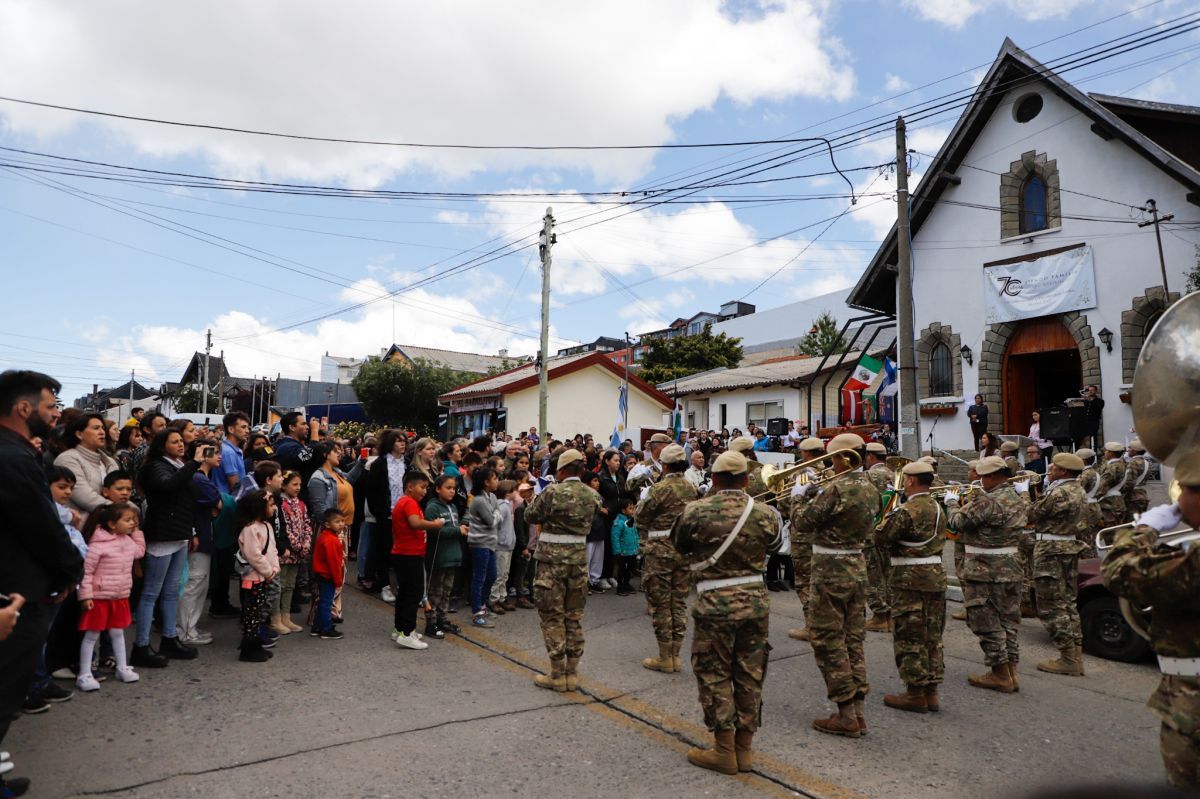 Allí se entonaron las estrofas del Himno Nacional Argentino con la participación de la Banda de la Escuela Militar de Montaña.