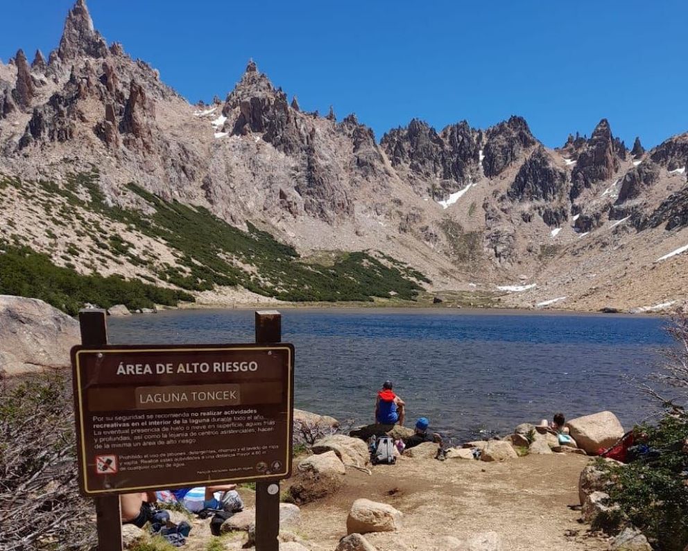 En la zona del refugio Frey se visitó el mismo evaluando aspectos vinculados a las reservas, y también se recorrió la zona de la Laguna Toncek, donde se brindaron recomendaciones informando a las personas que estaban utilizando la laguna para realizar actividades acuáticas, algo que está prohibido por la gran fragilidad de ese ambiente que posee flora y fauna que habitan allí y realizan su ciclo de vida.