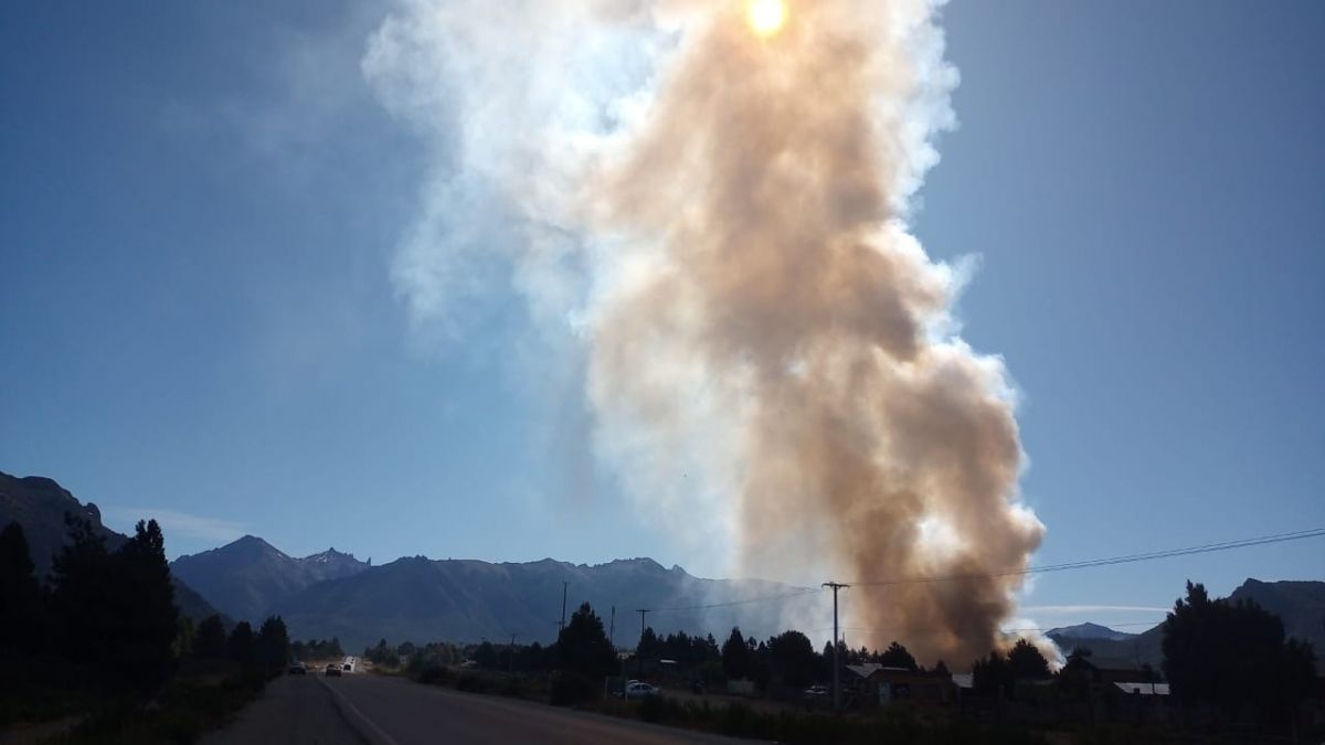 La columna de humo por sobre el Cerro Otto se divisó desde distintos puntos de la ciudad y zonas aledañas. El fuego se extendió hasta pasadas las 20 de este domingo.