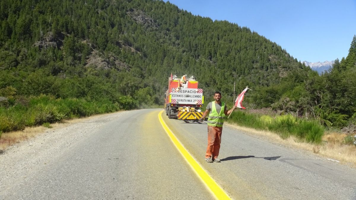 El Ministerio de Obras Públicas de la Nación, a través del 20º Distrito Río Negro, informa que se están ejecutando tareas de señalamiento horizontal en la ruta nacional Nº40, entre Bariloche y El Bolsón, para optimizar la visibilidad nocturna en el recorrido.