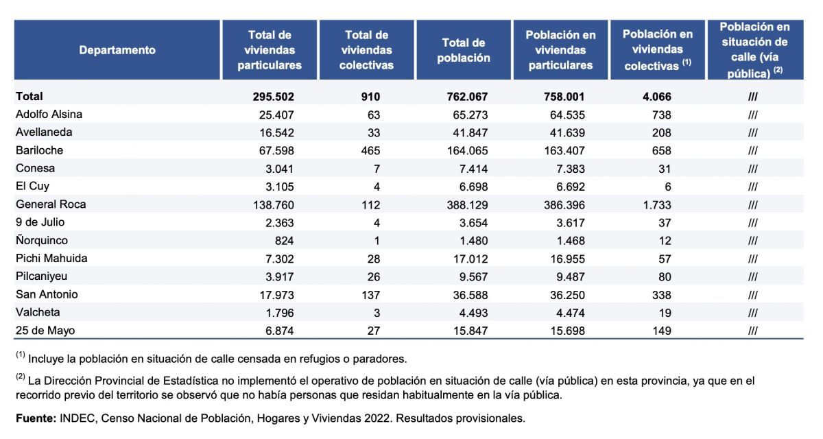 Según resultados provisionales del Censo Nacional de Población, Hogares y Viviendas 2022 presentados hoy, el Departamento de Bariloche tiene 164.065 habitantes.