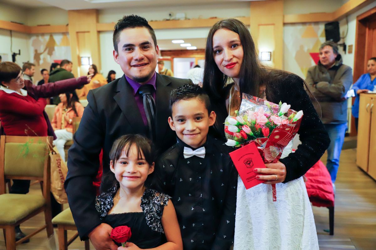 Dos jóvenes parejas de Bariloche eligieron el Día de los Enamorados para formalizar su matrimonio. Lo llamativo es que la ceremonia se realizó en la sala de Sesiones del Concejo Municipal con la presencia del delegado del Registro Civil de la ciudad, Jorge Huincapán.