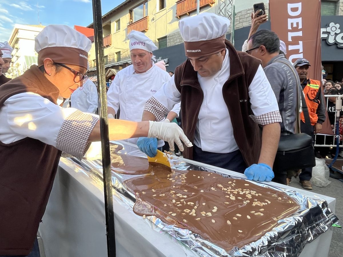 Este viernes, fue el turno de una de las actividades más esperadas de la Fiesta: La elaboración de la barra de chocolate más larga del mundo.