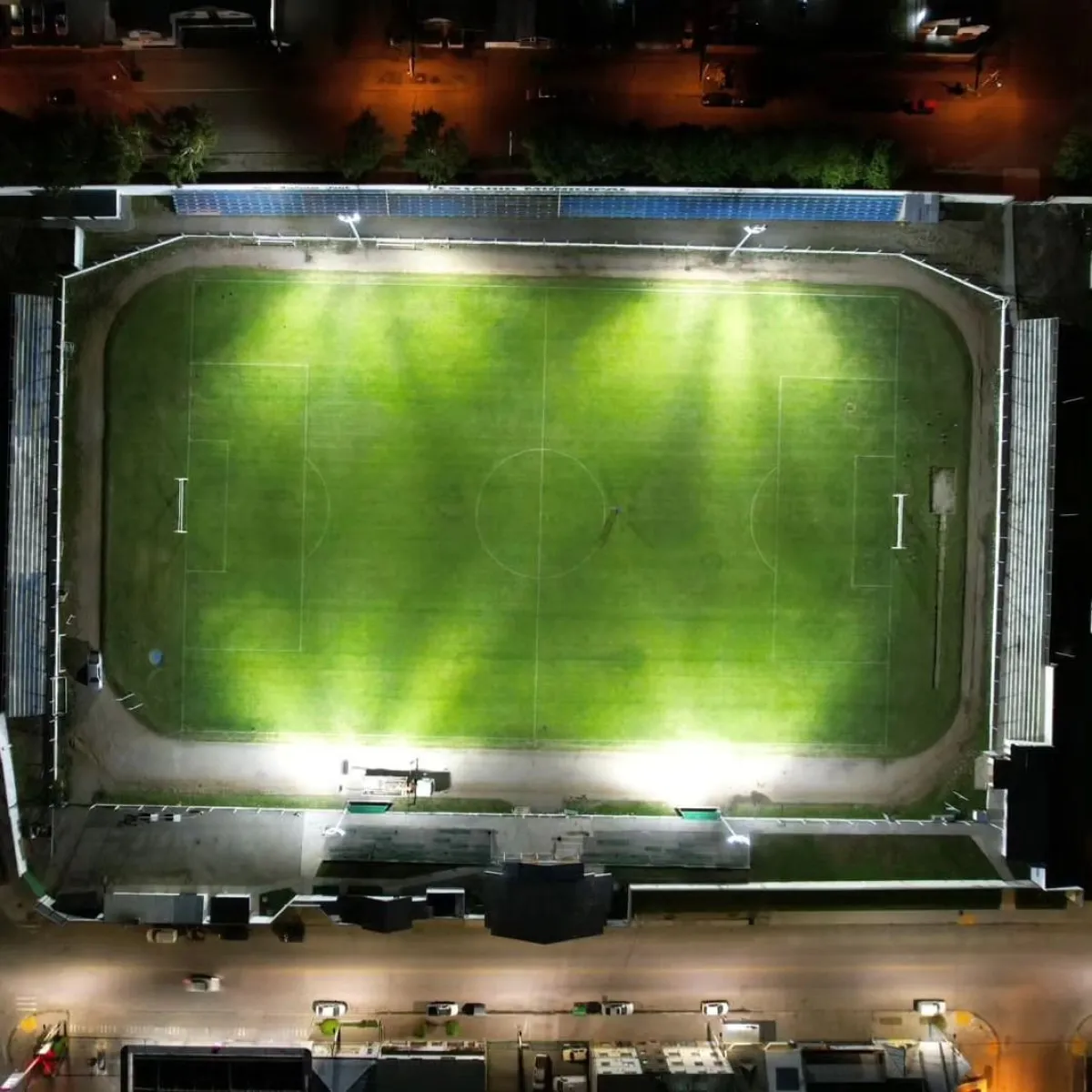 Se trata de 36 reflectores en las cuatro columnas del predio, todos con tecnología LED – Strand PS 500 con 68 mil lúmenes cada uno. Más una serie de reflectores en las cabeceras del campo de juego.