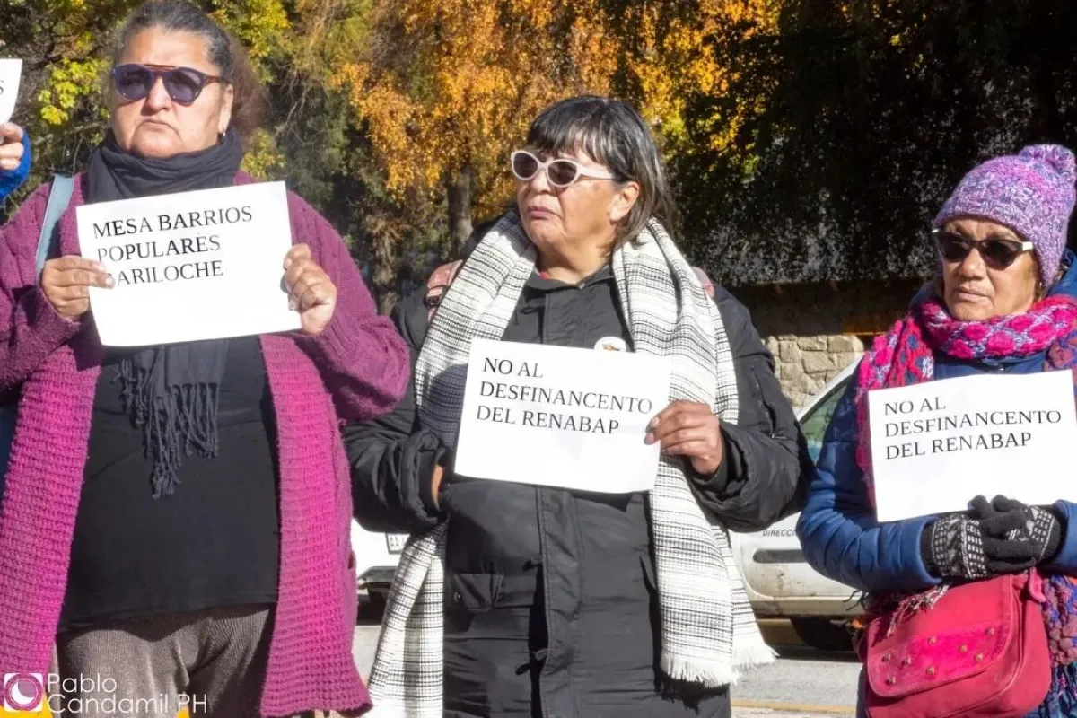 Referentes de distintos barrios populares de Bariloche se congregaron en el Centro Cívico para exigir trabajo y obras para esas zonas. La protesta responde a la preocupación por la falta de pagos para continuar obras que dependen del gobierno nacional.