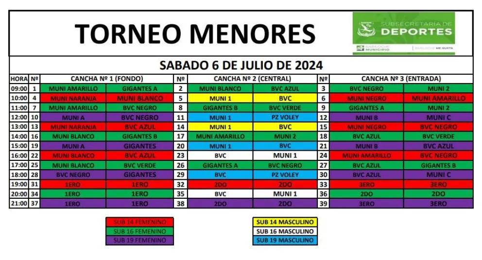 El día sábado 6 de julio en el Gimnasio Municipal Nº 3 “Alberto Gabriel Icare” se va a desarrollar un Torneo de menores de vóley para ambas ramas, de las categorías Sub 14, Sub 16 y Sub 19. Se jugará un total de 39 partidos desde las 9 hs en 3 canchas simultáneas.