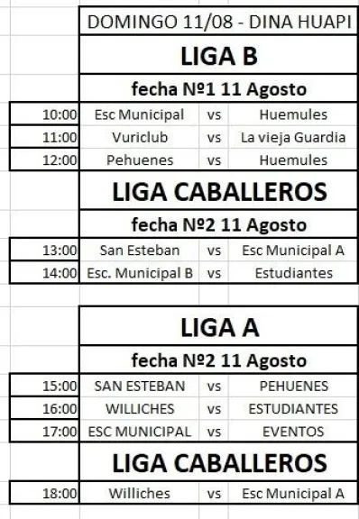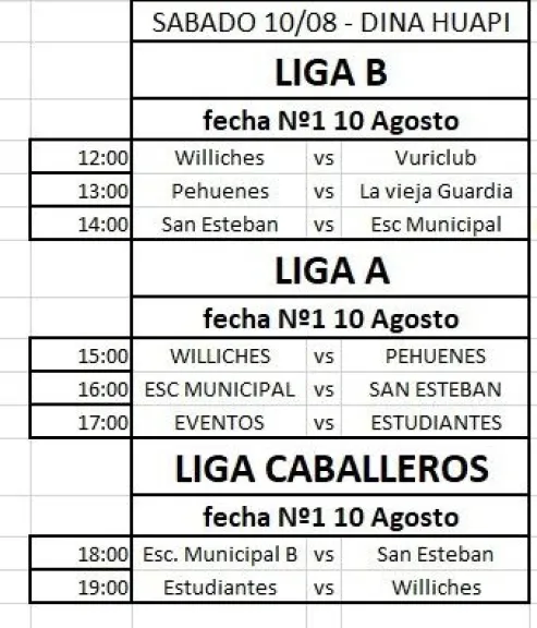 En la Liga Caballeros estarán disputando el Torneo Clausura 2024 un total de siete equipos y son San Esteban, Hualas Patagónico, Estudiantes Unidos, Williches, Lácar (SMA) y la Escuela Municipal, con sus equipos A y B.