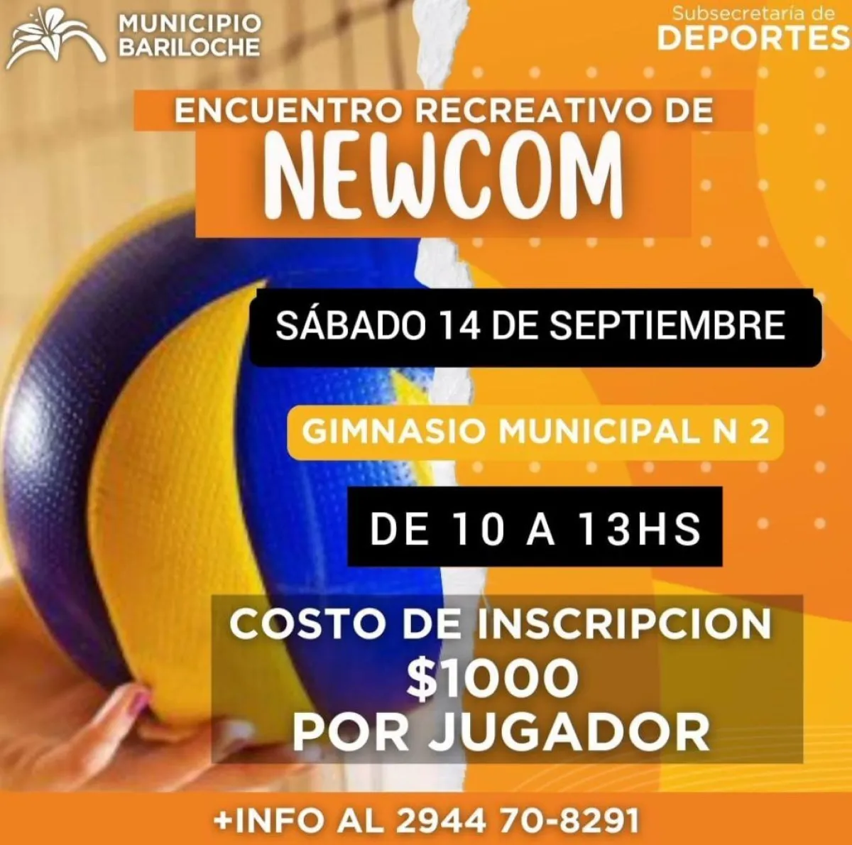 La Subsecretaría de Deportes del Municipio de Bariloche invita a la comunidad a disfrutar del Encuentro Recreativo de Newcom este sábado 14, en el Gimnasio Municipal N°2. La organización de este encuentro está a cargo de la Escuela Municipal de Newcom.