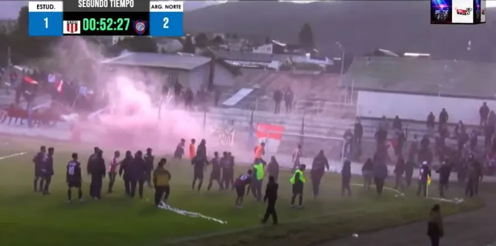 El encuentro tuvo un inesperado final, ya que si bien el partido se había jugado “con dientes apretados” como suele ocurrir en duelos como este, nada hacía pensar que podía darse ese desenlace. Violento cierre tras el pitazo final, con corridas, insultos, golpes y empujones que iniciaron en el campo de juego y se trasladaron a las tribunas, primero en el sector de “plateas”, con hinchas hasta saltando el bajo alambrado para meterse en la cancha para unirse a la gresca y luego en la popular que da a espaldas al corralón municipal con objetos y bengalas que eran arrojadas desde las tribunas.
