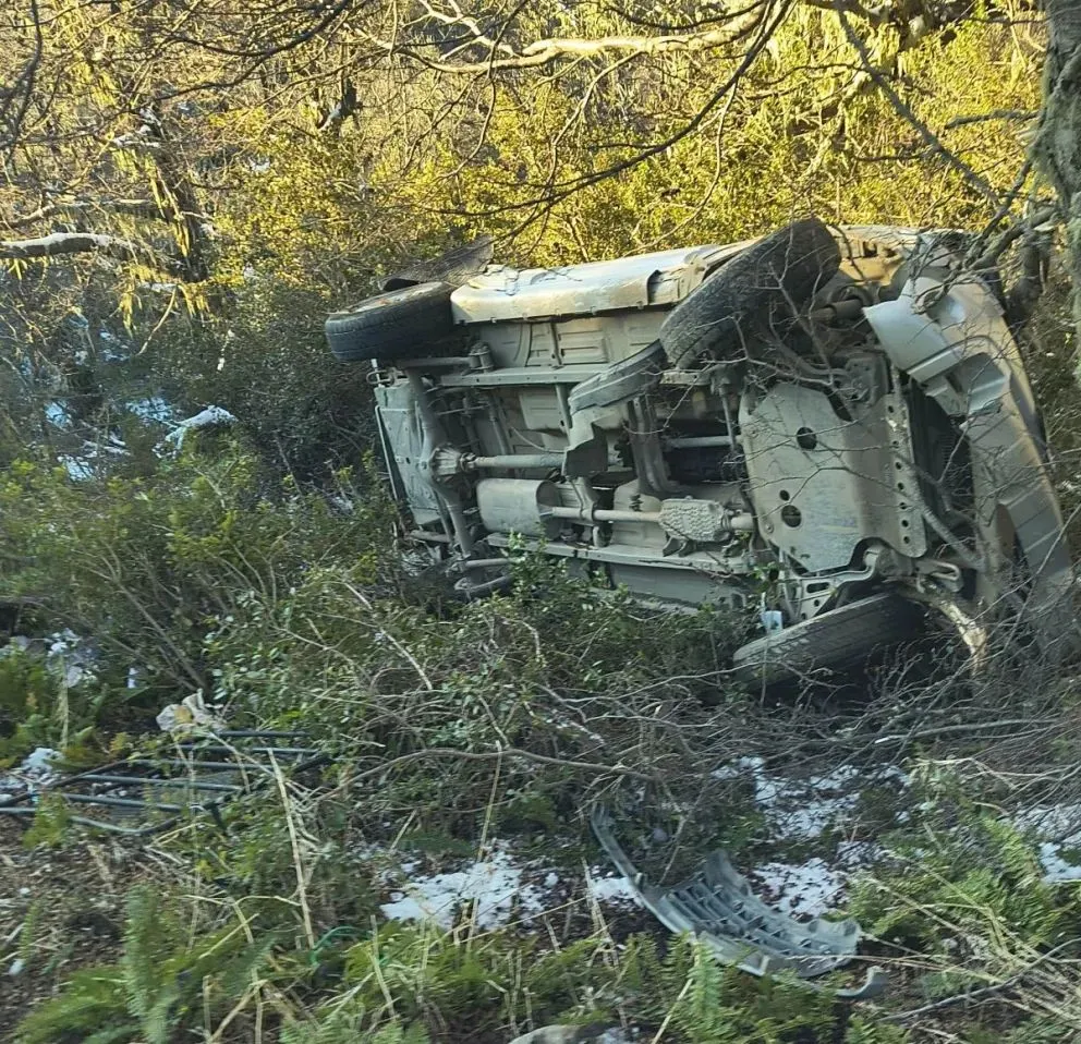 Según se pudo conocer, el conductor perdió el control del rodado, que se precipitó varios metros por la ladera, provocando importantes daños estructurales en la unidad.