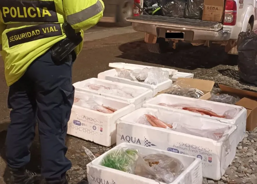 El Cuerpo de Seguridad Vial de la Zona Andina secuestró más de 100 kilos de pescados y mariscos en un operativo realizado este miércoles por la noche en el puesto de control ubicado en el barrio Las Chacras, a pocos kilómetros de Dina Huapi.