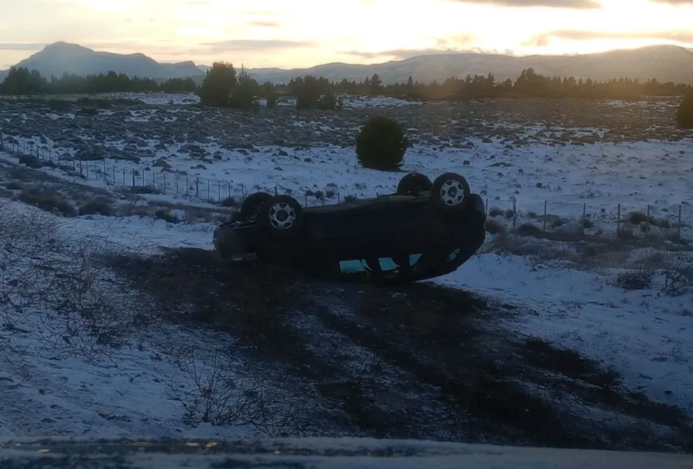 Esta mañana, un auto volcó en la ruta de Circunvalación, luego de que el conductor perdiera el control en un sector con hielo y nieve.