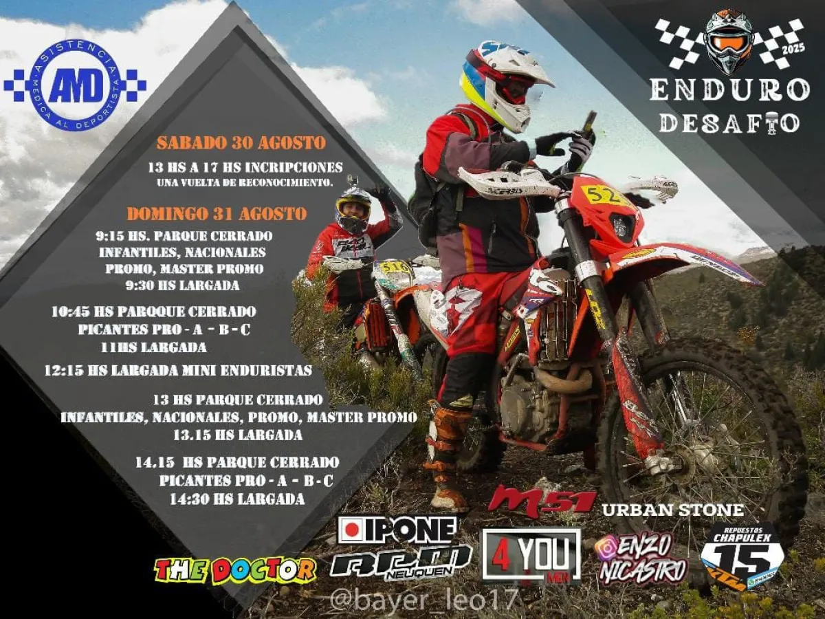 Este 30 y 31 de agosto vuelven a la acción las carreras de otro ya conocido campeonato de enduro de nuestra zona, anteriormente llamado Enduro de las SSS y ahora rebautizado “Enduro Desafío”