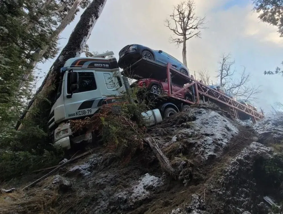 El accidente ocurrió este miércoles cerca de las 08:40, cuando un camión con acoplado destinado al transporte de automóviles perdió el control y se despistó en la curva del sector de Laguna Totoral.