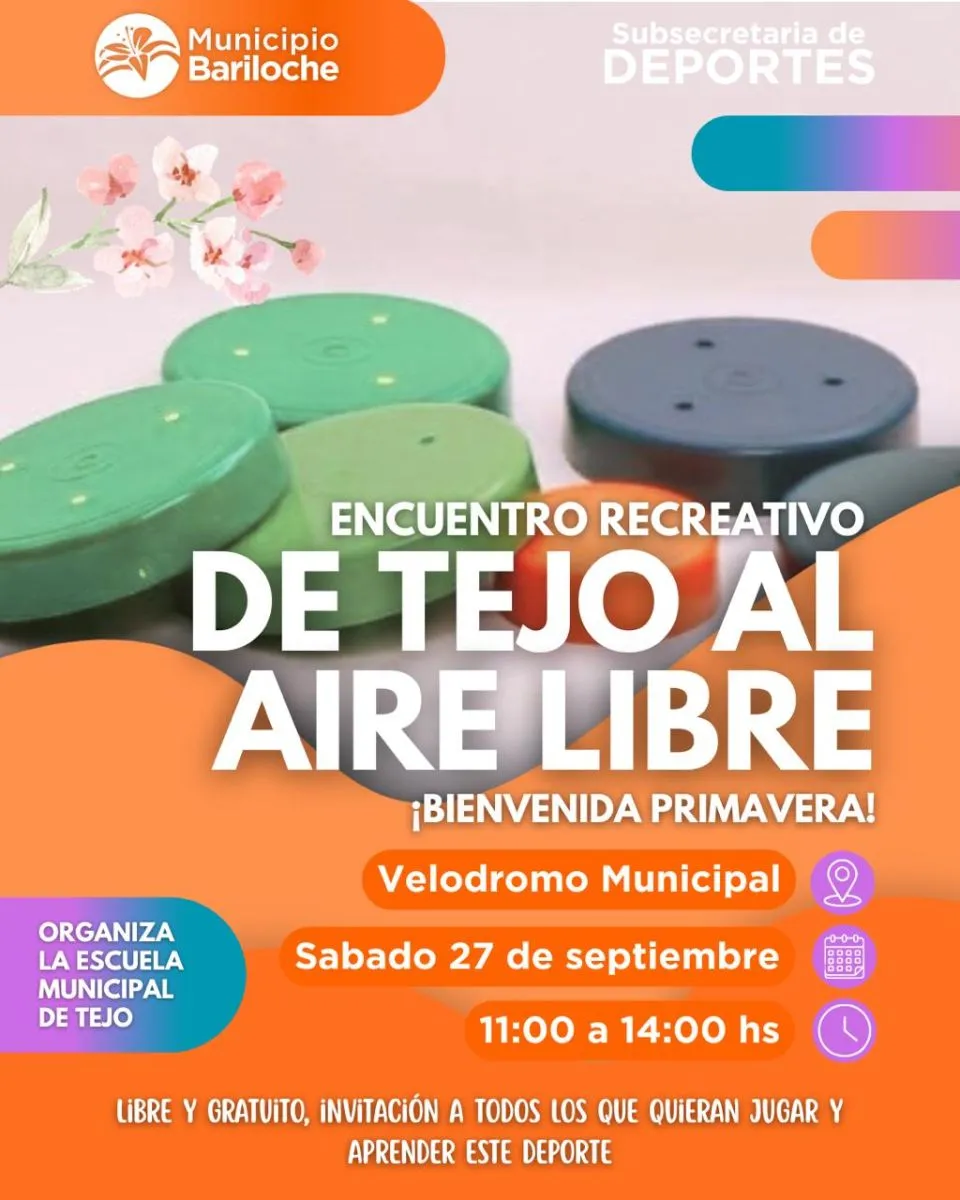 La llegada de la primavera se celebra con movimiento, diversión y deporte en San Carlos de Bariloche. En esta oportunidad, la Subsecretaría de Deportes y la Escuela Municipal de Tejo proponen una jornada diferente: un encuentro recreativo abierto a toda la comunidad.