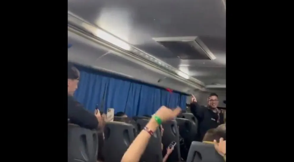 Según se observa en las imágenes, un coordinador de la empresa de viajes responsable estaba presente y alentaba a los jóvenes a continuar con los cánticos.