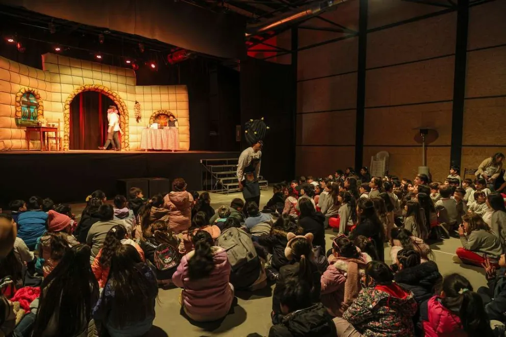 Durante hoy y mañana, los artistas se presentan en el Teatro Público de Bariloche, donde los chicos participan con entusiasmo y alegría en cada función.