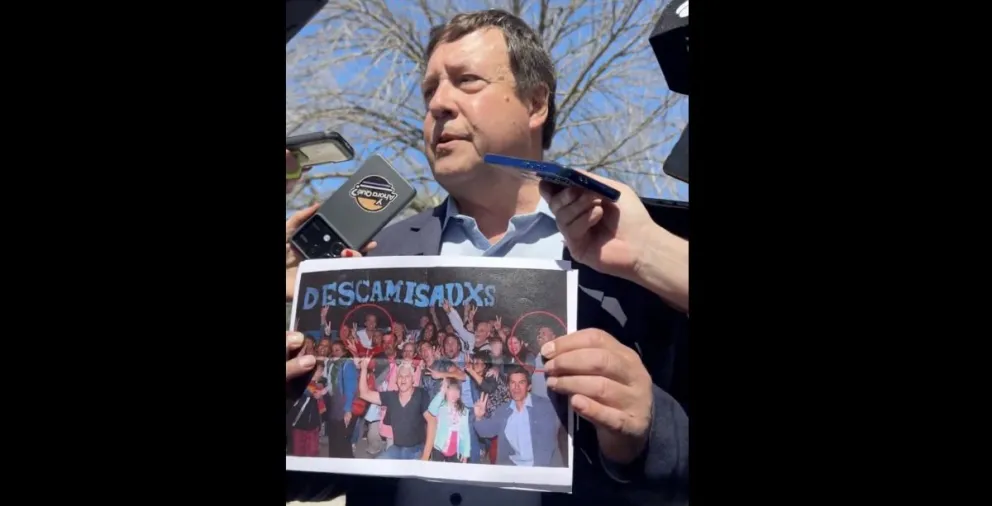 “Quiero mostrarles esto: esta es la verdadera vinculación de la política con el narcotráfico en Río Negro, que es la relación de la familia Soria y la familia Montecino”, expresó mostrando una fotografía que, según explicó, evidencia ese vínculo.