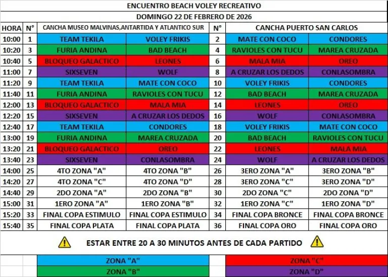Toda la competencia sera en dos canchas desde las 10 hs hasta las 16 hs.
