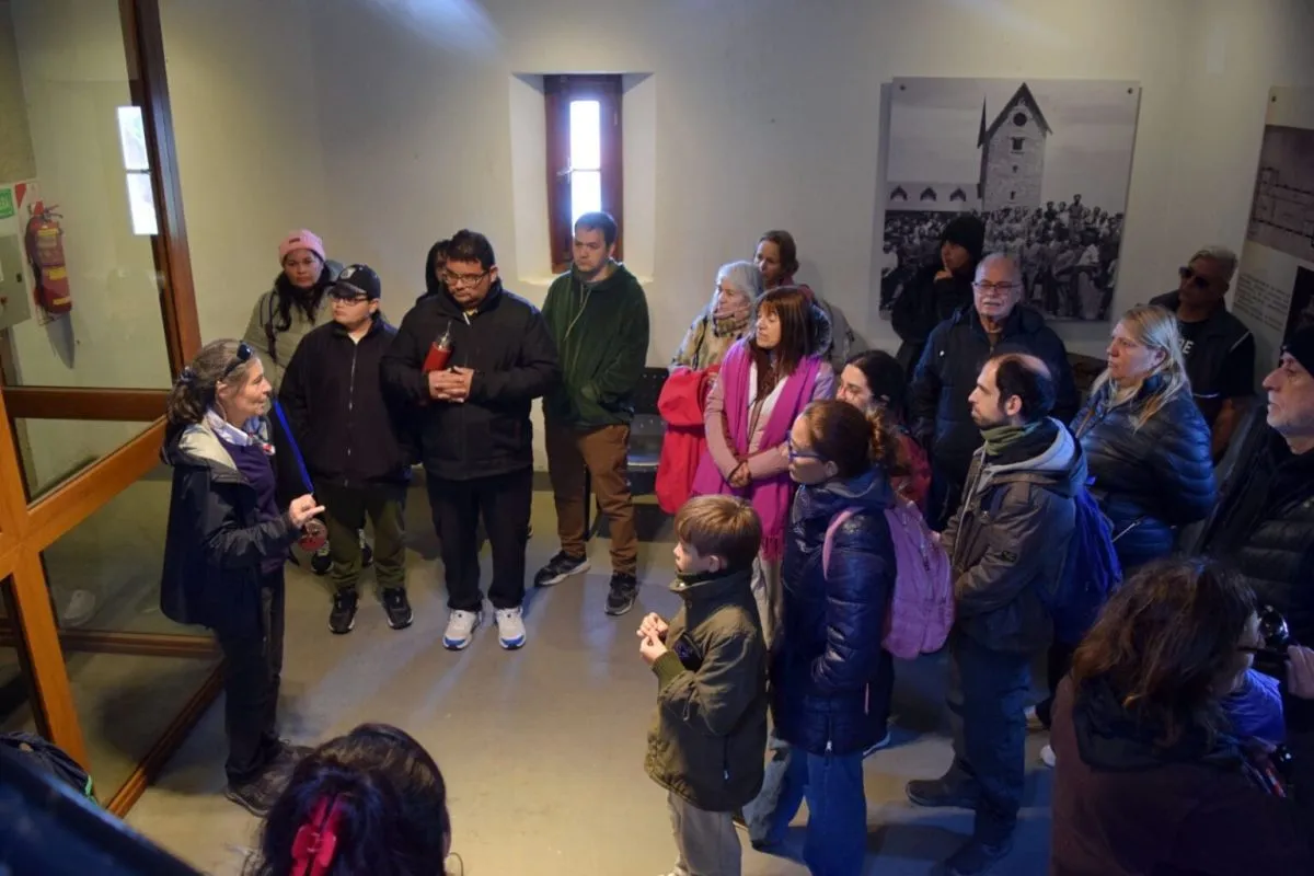 Durante los recorridos, se brindó información sobre la historia y construcción del Centro Cívico, desarrollado entre 1936 y 1939 bajo la gestión de Exequiel Bustillo, con materiales característicos como piedra y madera de la región.